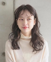 劉海的空氣感和整體發(fā)絲的蓬松柔和融為一體,制造出飽滿厚重的發(fā)量既視感,適合發(fā)量少的女生。